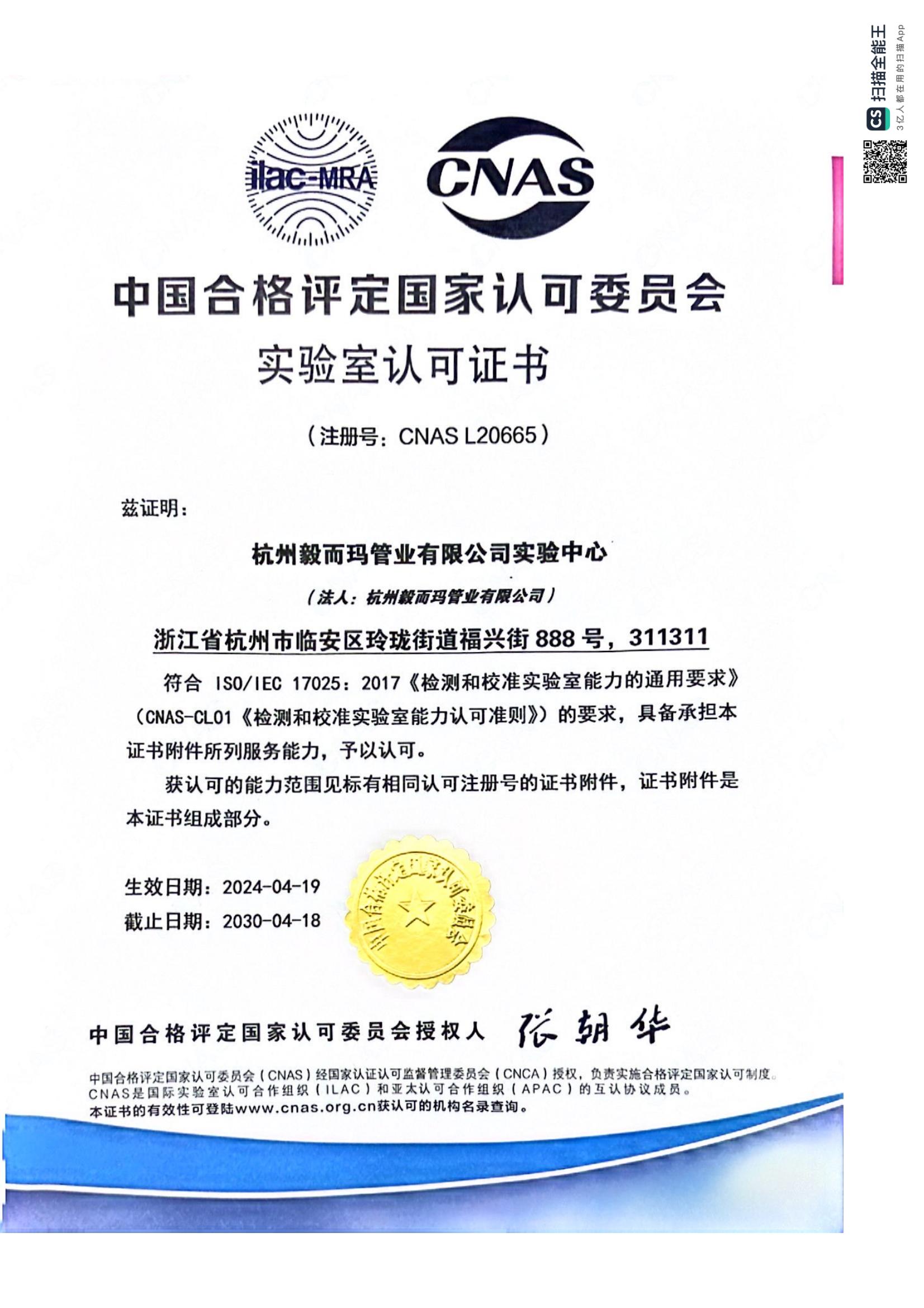 国家实验室证书