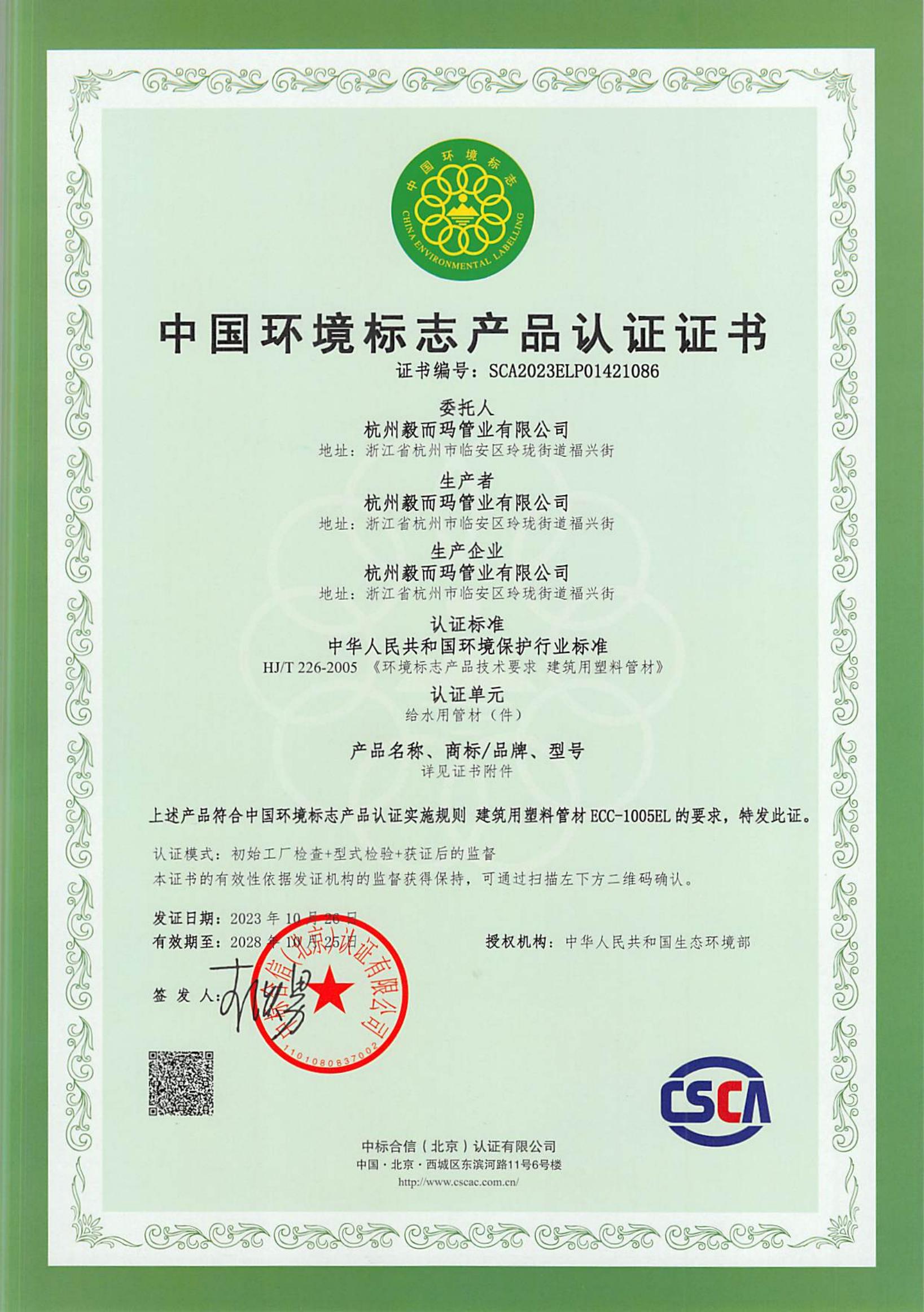 浙江制造认证证书