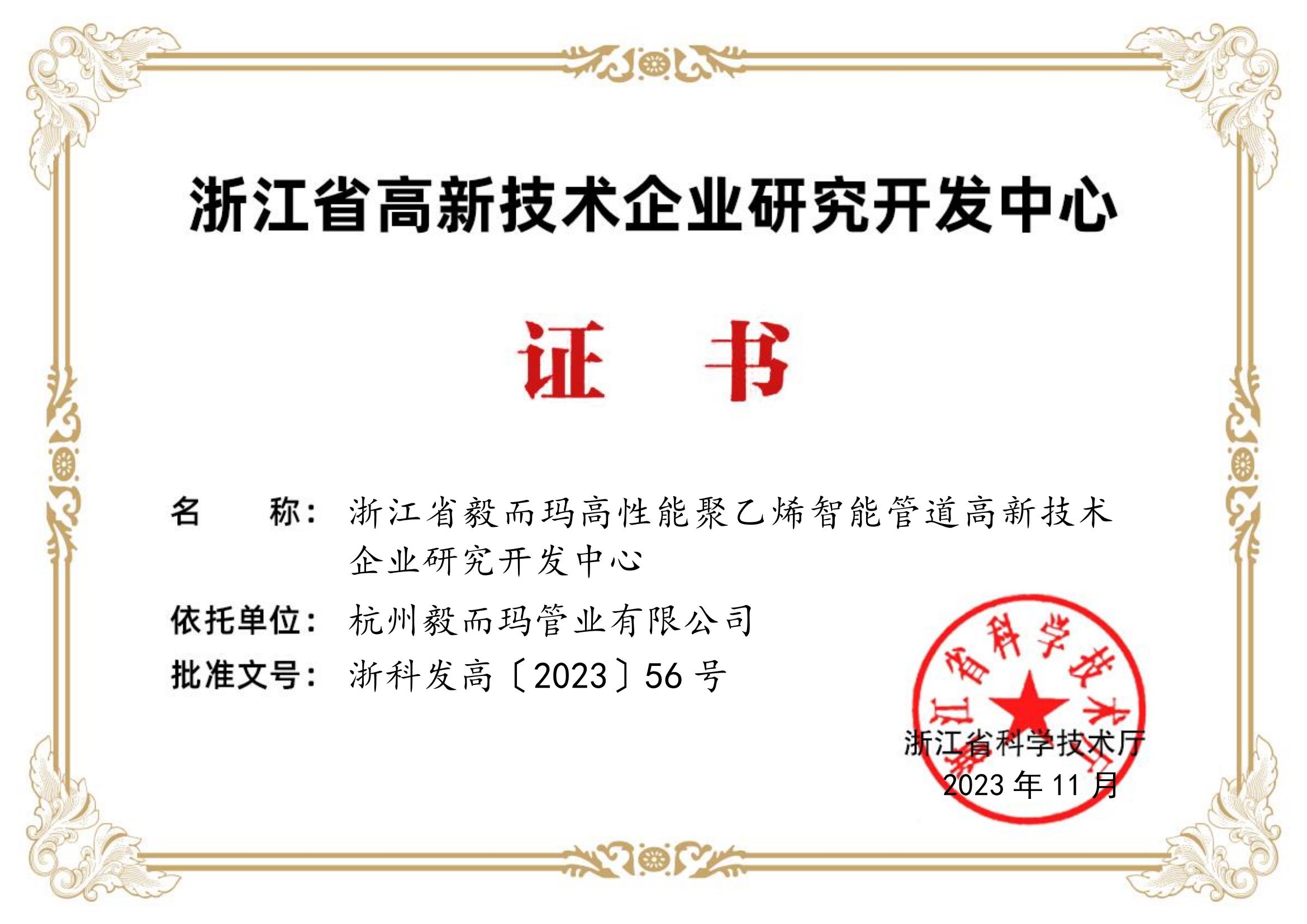 省级研发中心证书