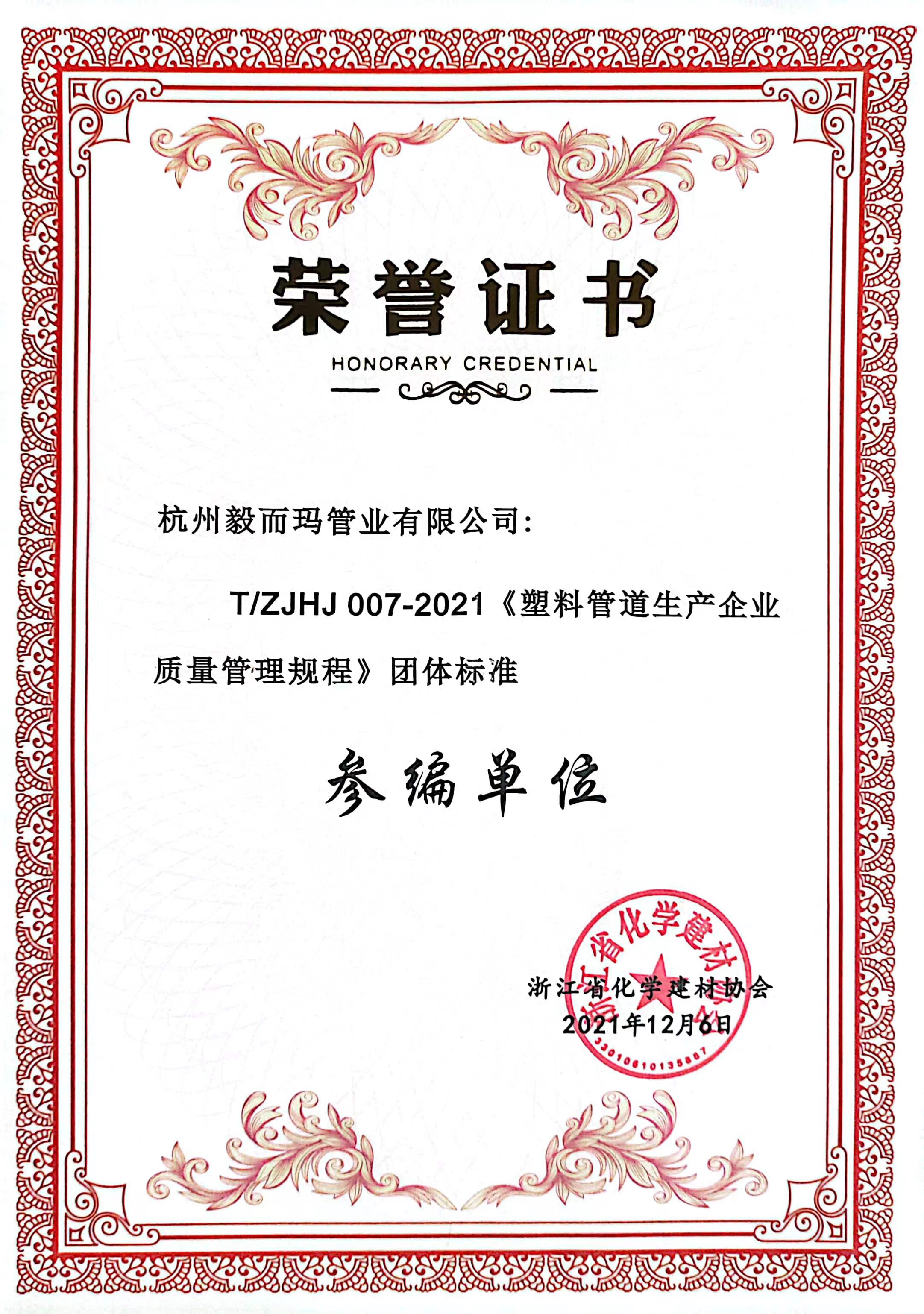参编单位荣誉证书