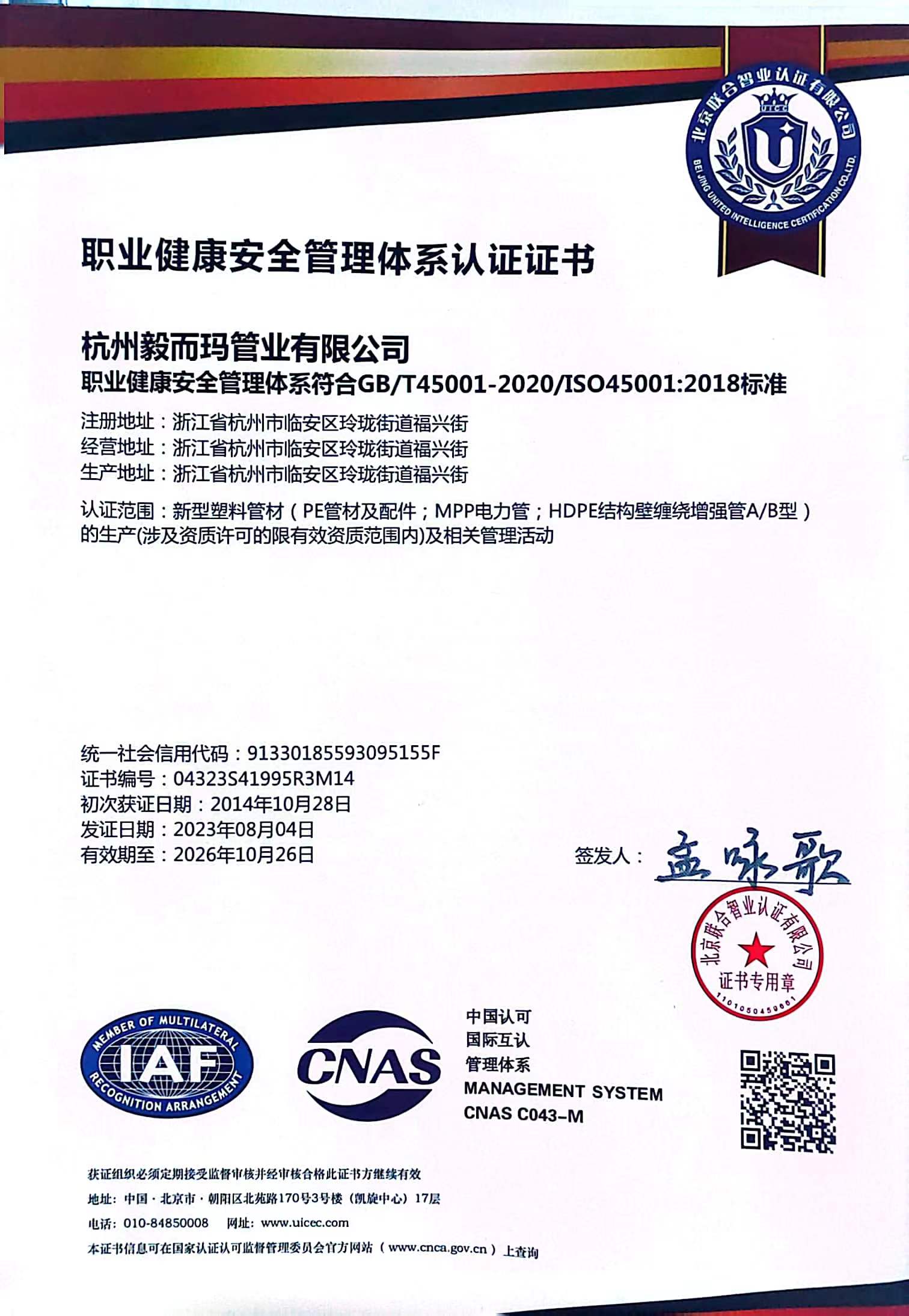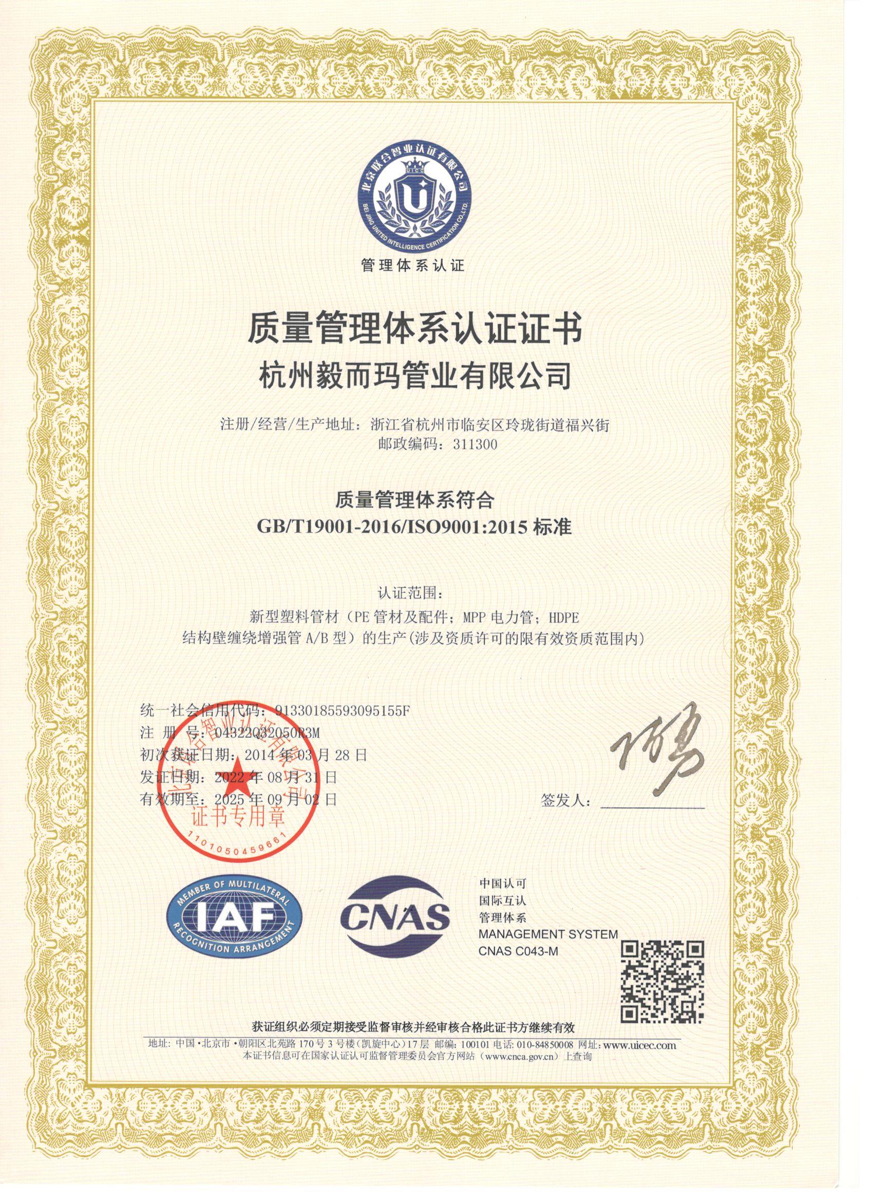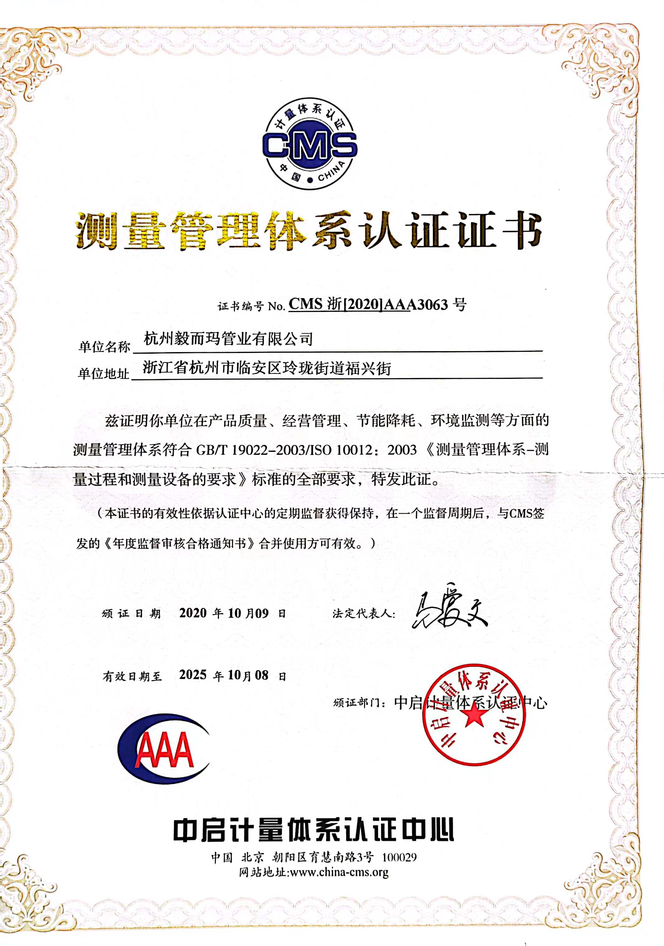 测量管理体系证书